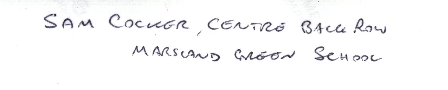 0000007 | "School photograph including Samuel Cocker, Marsland Green School - date unknown. Modern gloss reprint" | """SAM COCKER, CENTRE BACK ROW | MARSLAND GREEN SCHOOL"" ]Kenneth Cocker's handwriting]" | | Print | BW | Gloss | 23.5 | 14.9 | |