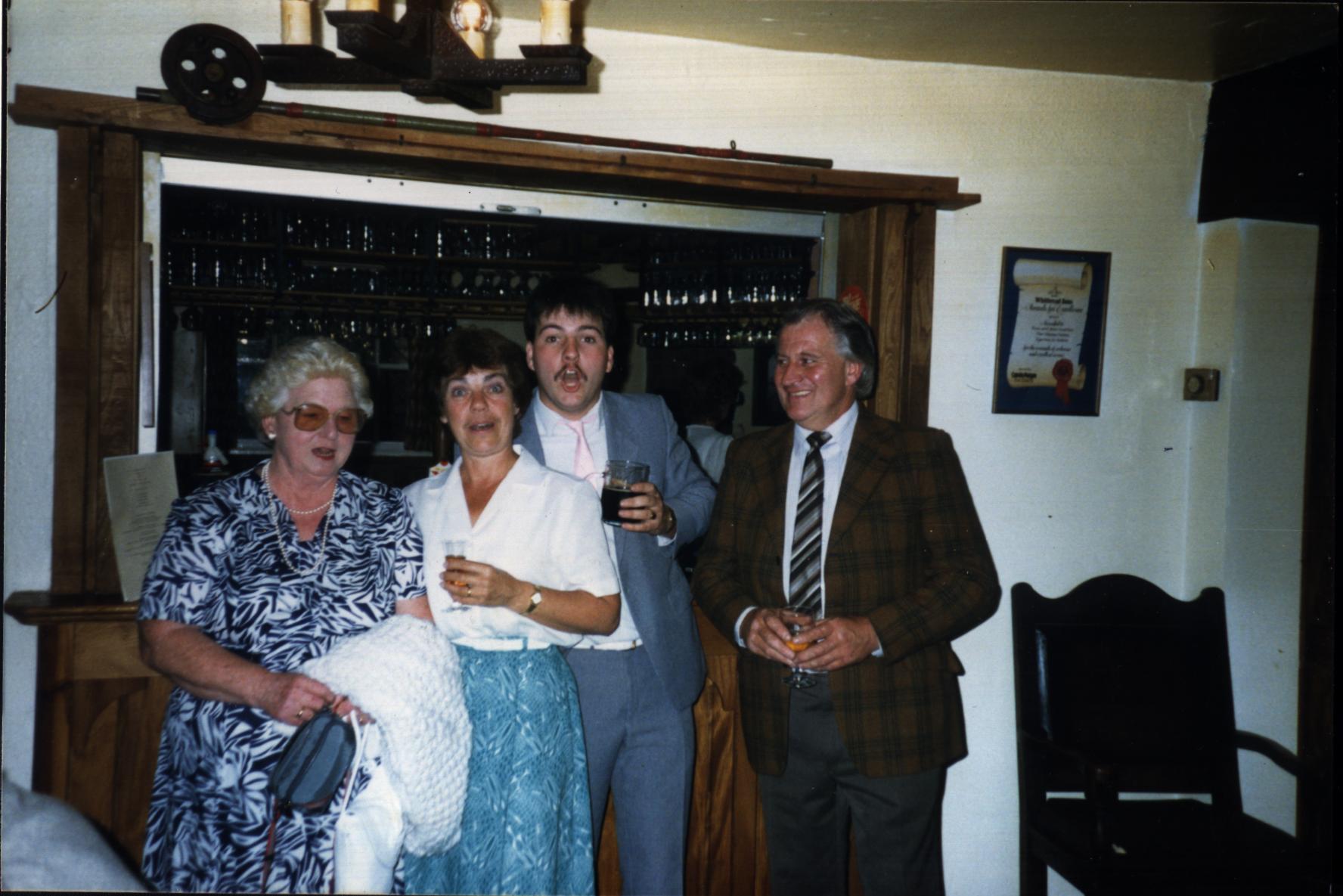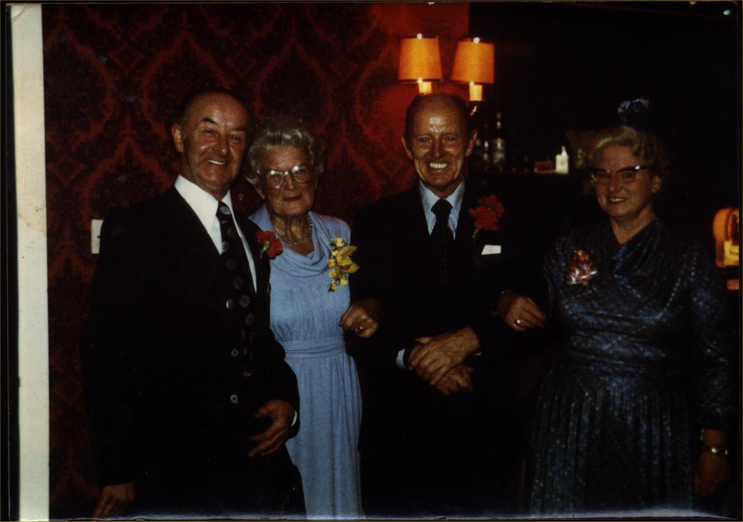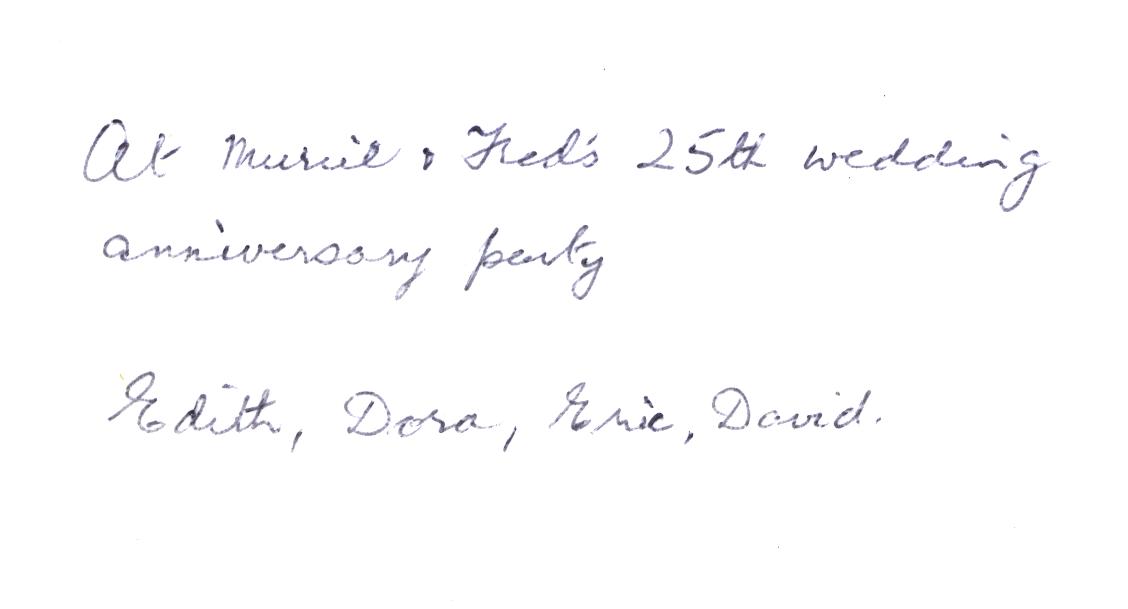 0000040 | "Edith Cocker, with Dora, Eric and David Dickinson at Muriel and Fred Lowe's 25 wedding anniversary party" | """At Muriel & Fred's 25th wedding anniversary party