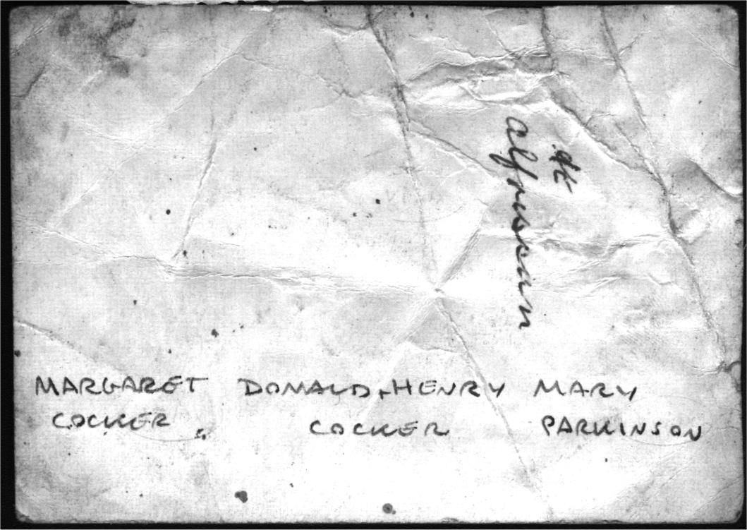 ""Margaret Cocker | Doanld + Henry Cocker | Mary Parkinson"" [handwritten Kenneth Cocker]" | | Print | BW | Gloss | 8.8 | 6.2 | |