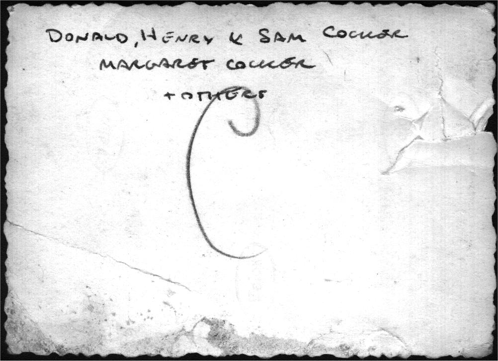0000025 | "Margaret Cocker (L), with Donald (R) and Henry (C) Cocker" | """Margaret Cocker
