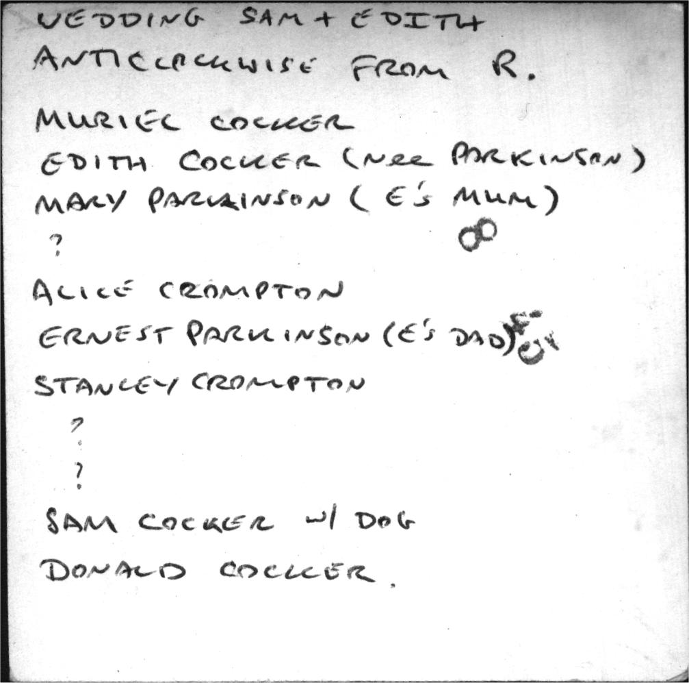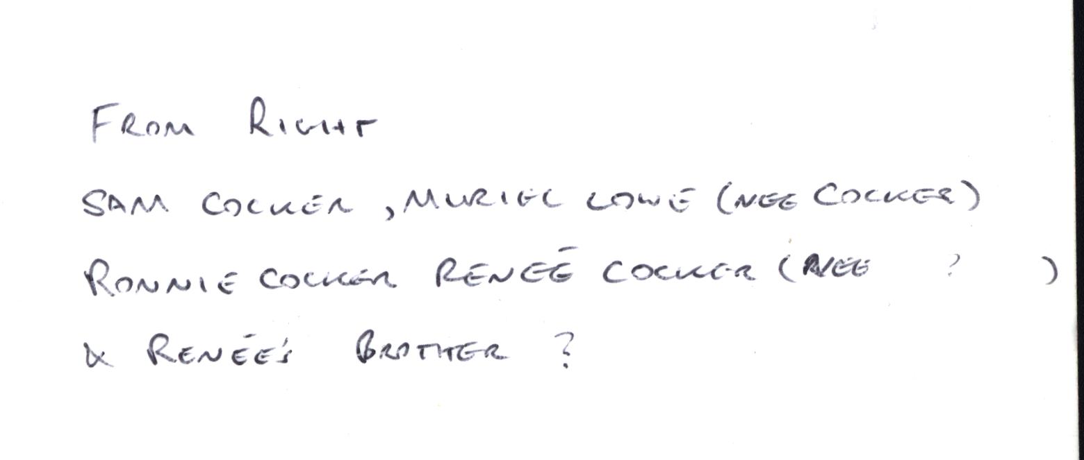 0000038 | "R>L Samuel Cocker, Muriel Lowe, Ronnie Cocker, Renee Cocker & Renee's Brother (unknown)" | """From Right