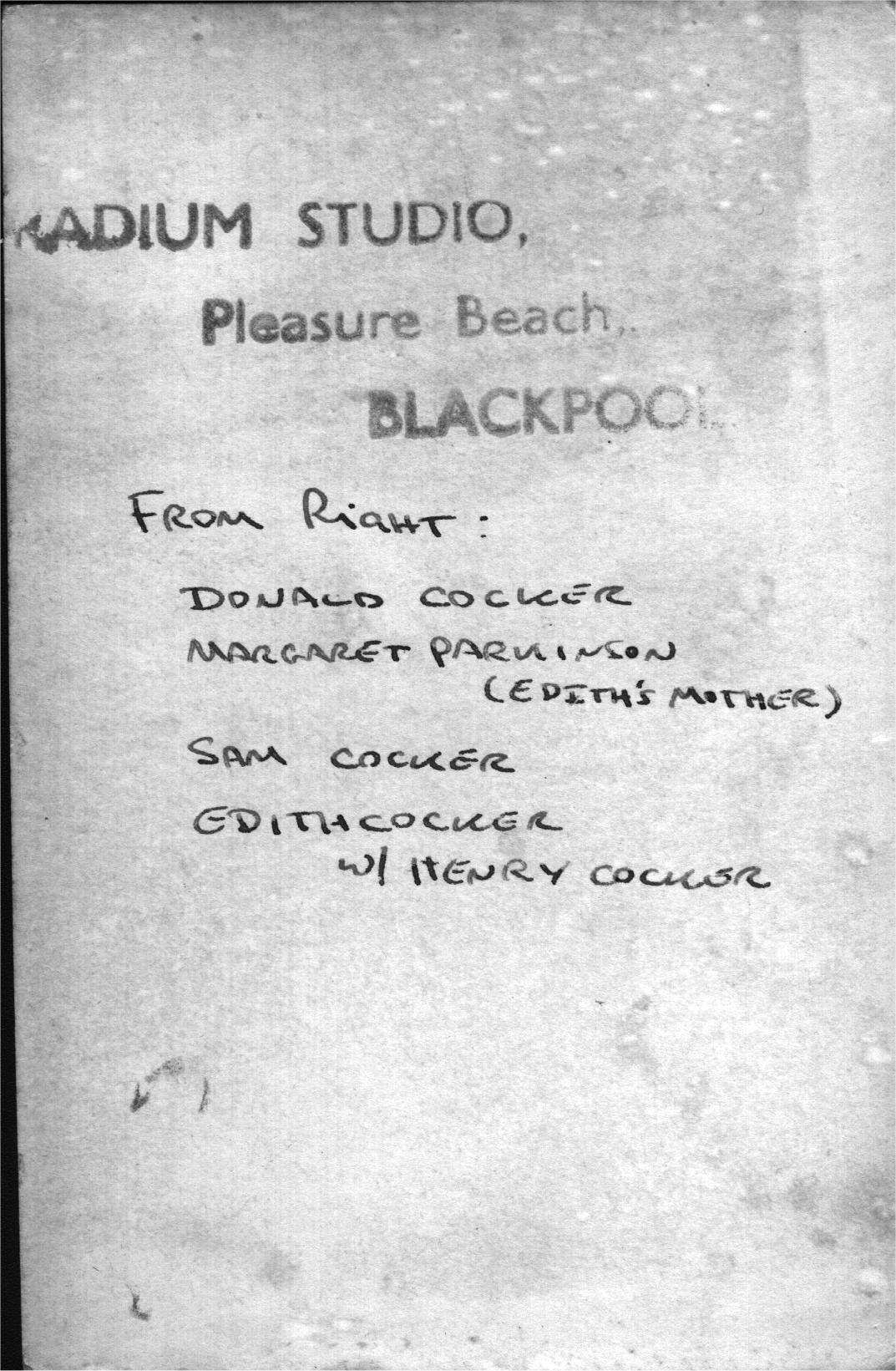 0000028 | "Donald, Margaret, Samuel Edith and Henry Cocker at Blackpool Pleasure Beach" | """RADIUM STUDIO,