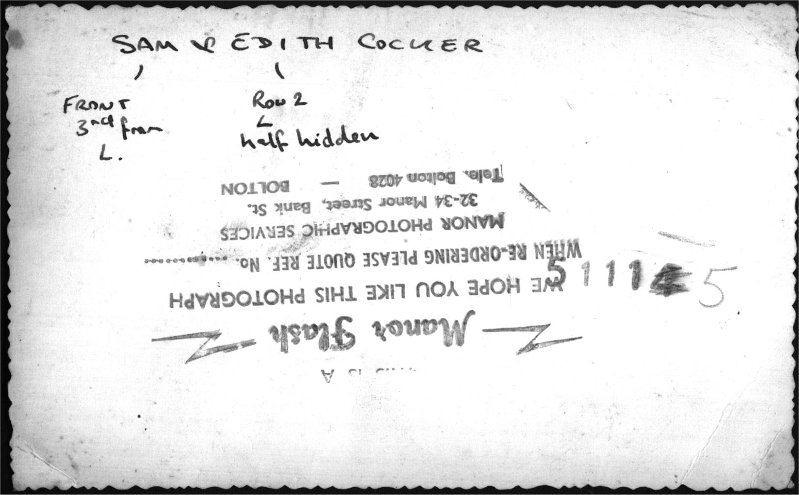 0000031 | Sam & Edith Cocker (front 3rd from left and second row 2nd from left respectively) | """This is a