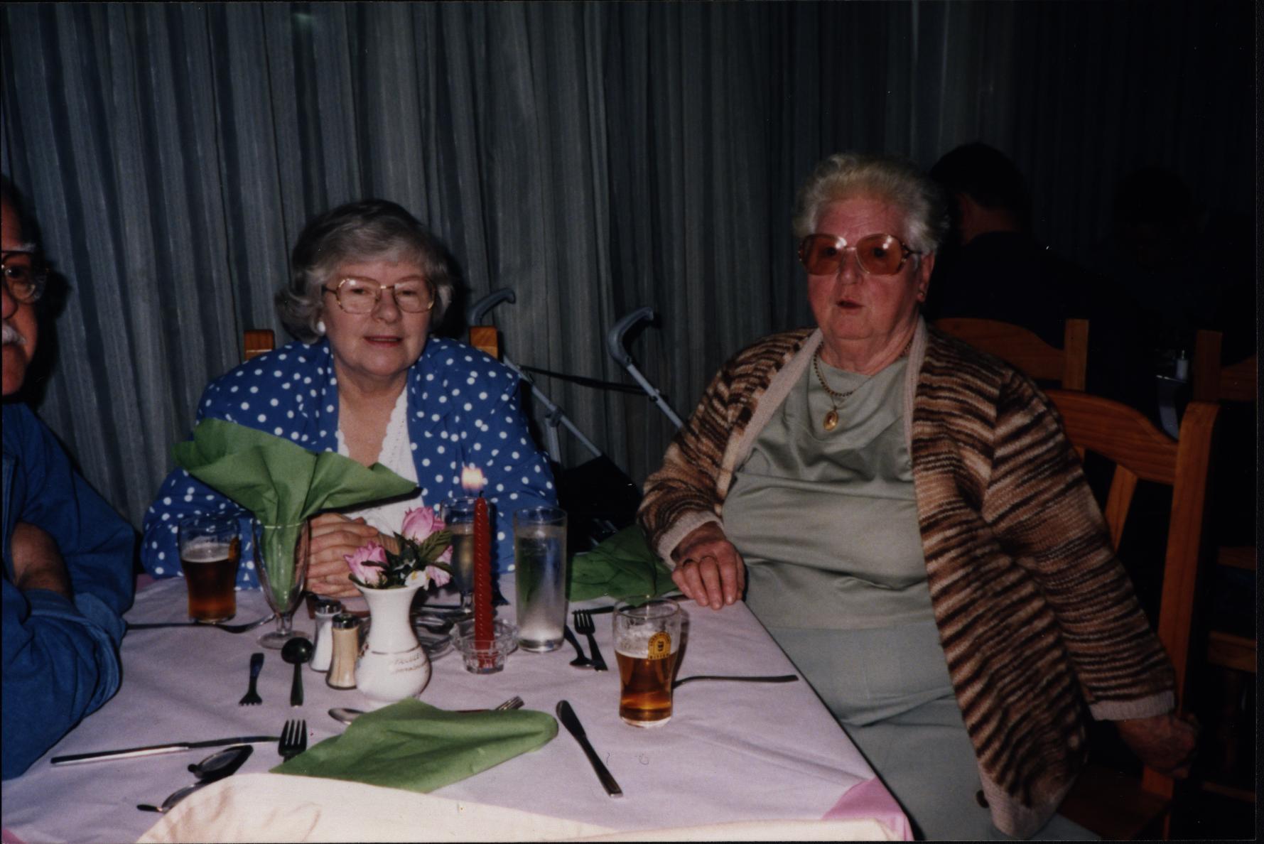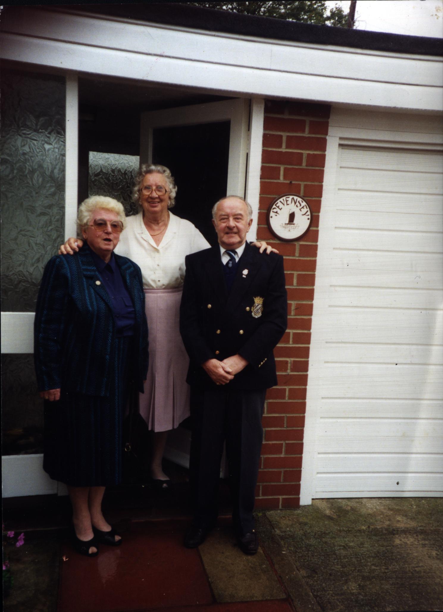 0000046 | Edith Cocker (R) and Muriel Lowe (L) with Fred Lowe almost out of shot on the right. | """Muriel Lowe & Edith Cocker