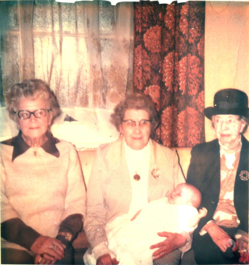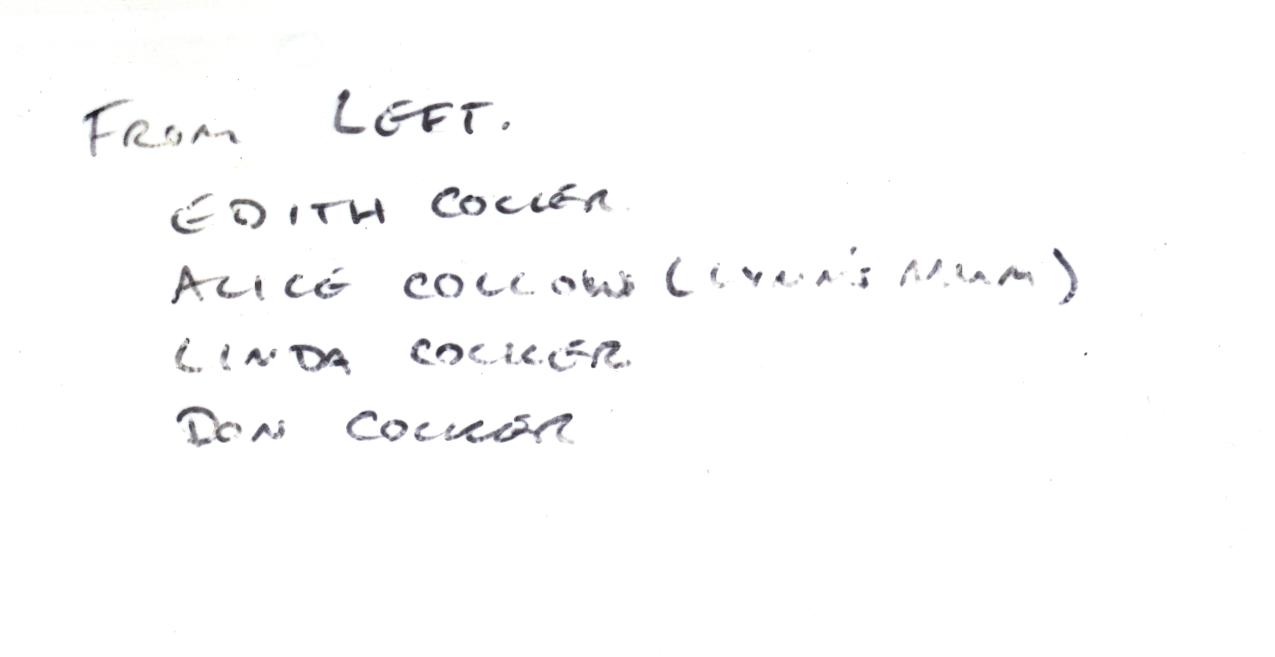 0000043 | "L>R Edith Cocker, Alice Collow (Linda Cocker's mother) and Linda & Donald Cocker." | "From Left,